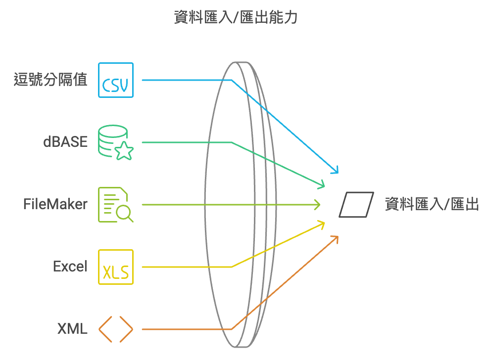 dBASE III 和 IV DBF 格式(.dbf): 可匯入和匯出。