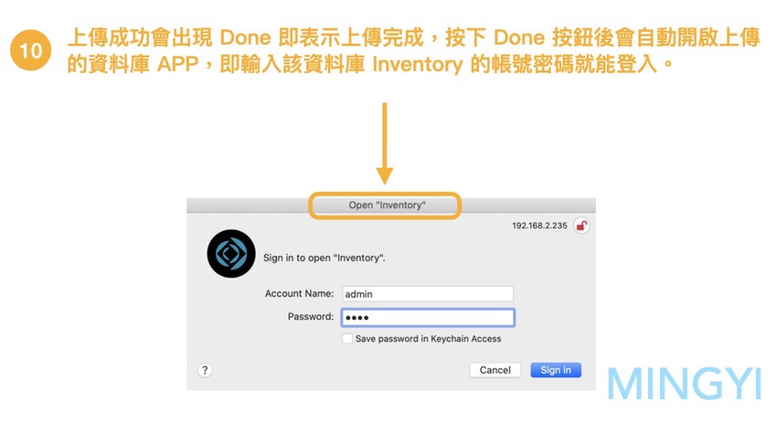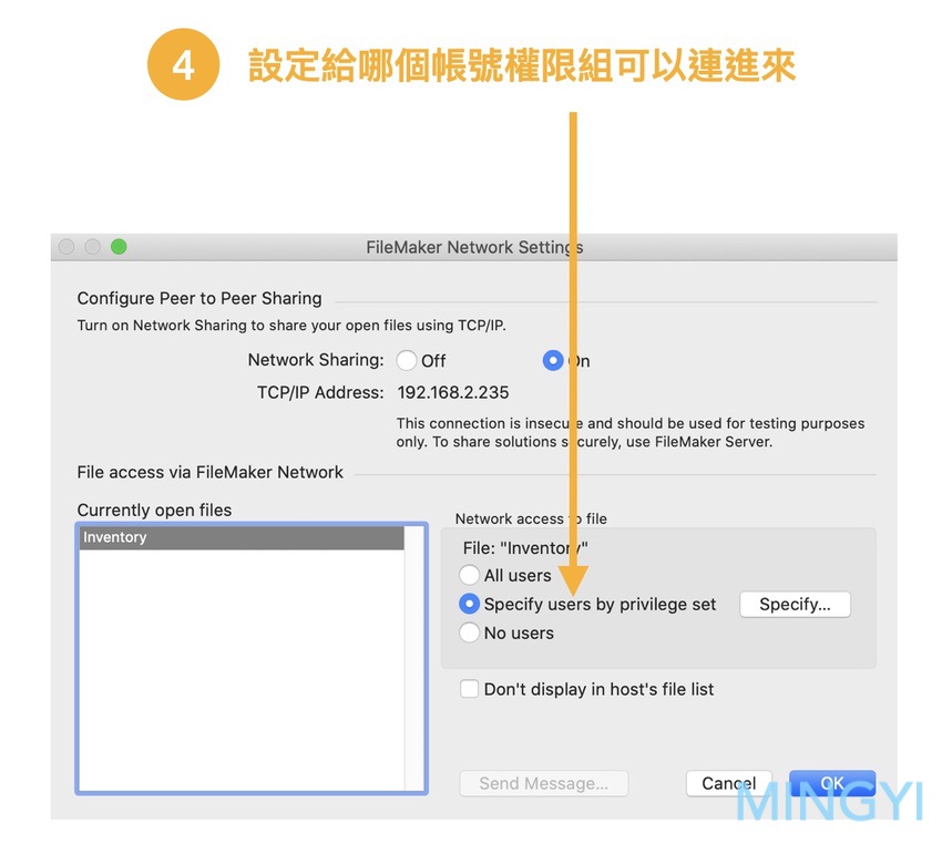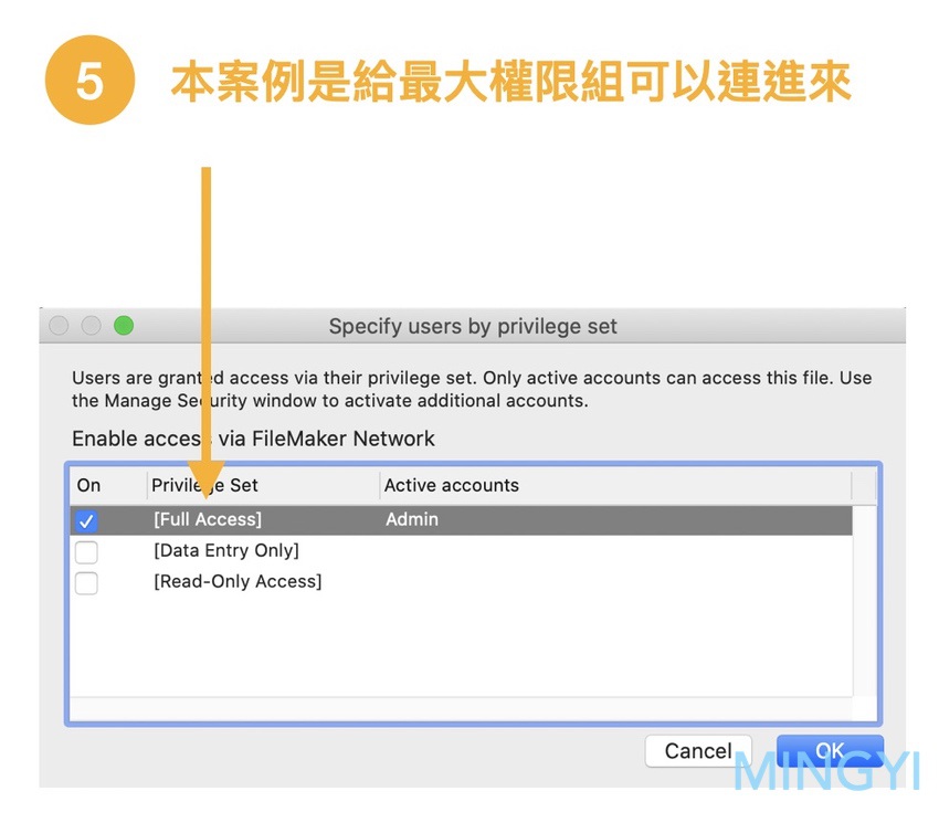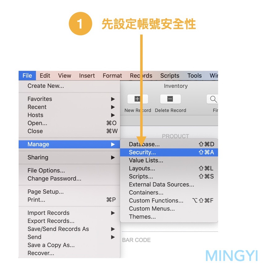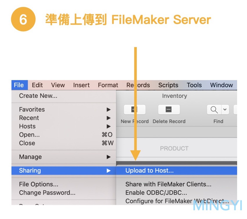 貫穿上傳只要把握三個步驟,即設定帳號安全性、開誰能來共享使用、最後是上傳到 FileMaker Server,如下三個步驟。